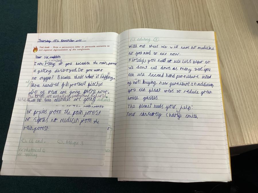 Oak class are currently learning all about the rainforest and the plight it finds itself in due to deforestation. As part of their English hot task they has to apply all their knowledge and skills needed to write a persuasive letter to the PM. They can't now wait to send them to see if he replies!
