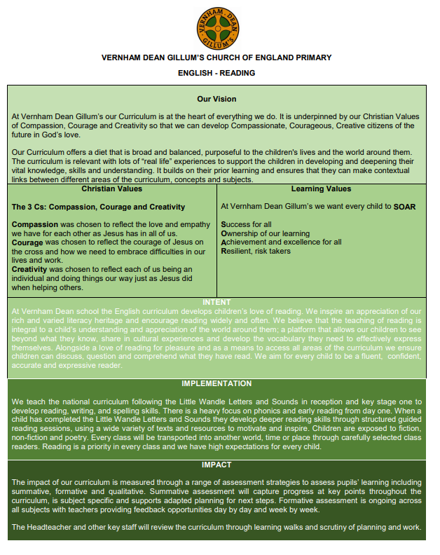 Reading is highly valued at our school, each class has a devoted reading and as a school we love books. We have introduced the RED challenge this year which stands for Read Every Day. This encourages children to read at home every day and this is celebrated in school.