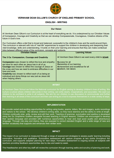 At Vernham Dean Primary we always ensure there is an exciting hook for writing so that it inspires imagination. Examples of hooks include: a wellie walk; cooking; animated stories without endings and enriched texts. All our units of work are meaningful and have clear purpose and audience. Each week, children are given the opportunity for free writing as Aspiring Authors so they can take ownership as an author. English is text driven and a fantastic wide range of texts are explored and different genres of writing within that one text.