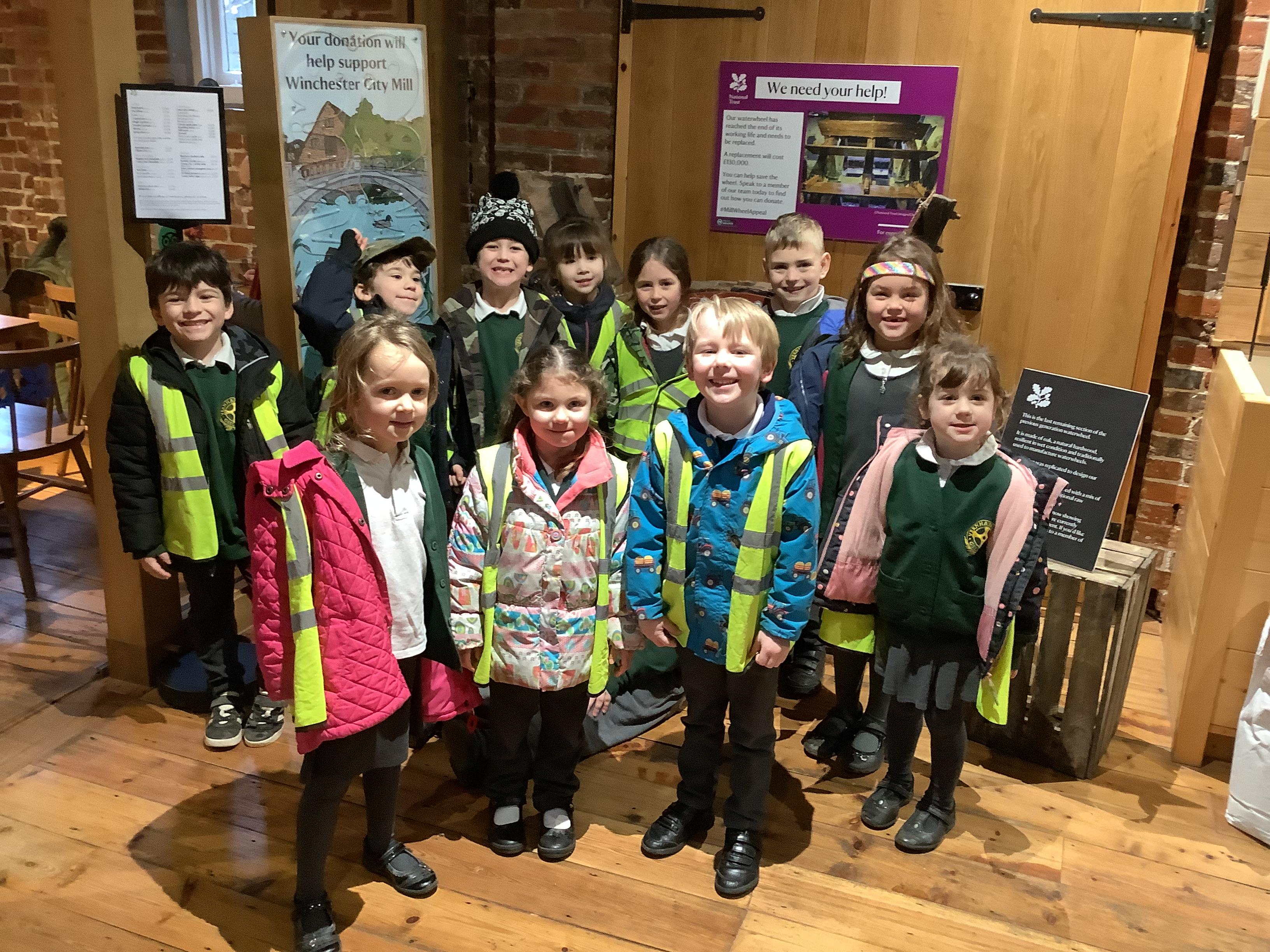 As part of our topic on Food, we went to visit Winchester City Mill to see how flour is made. We learnt how the grain gets crushed between two mill stones to make the flour. We all had a go at grinding the grain ourselves and soon realised how difficult it would have been without the water mill to do the work for us. Thank you to the millers who showed us around and told us all about the mill's history.