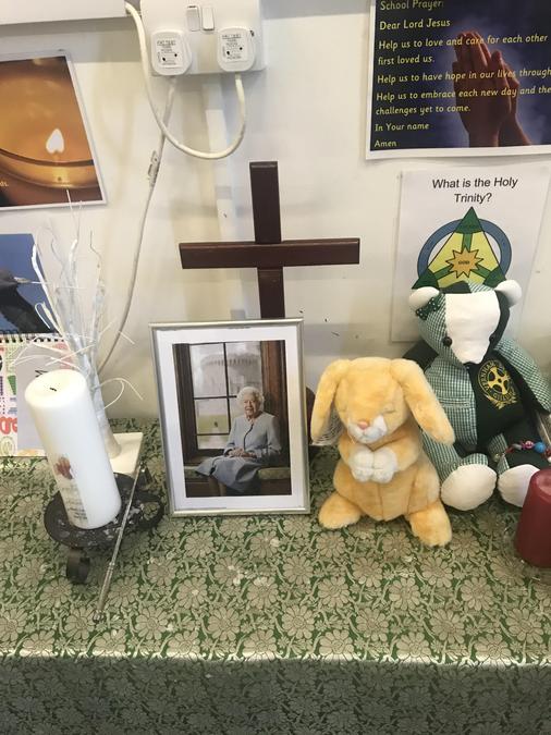 We have also created a book of condolence for the Queen, which the children, staff, parents and visitors can write in. David Sullivan our local Minister is the first one to write in it.